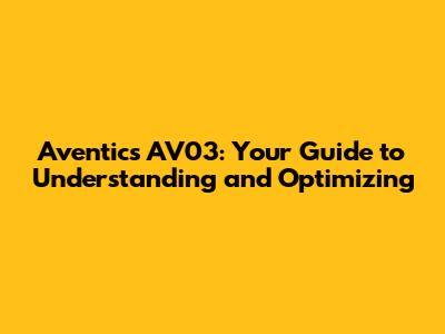 Aventics AV03: Your Guide To Understanding And Optimizing