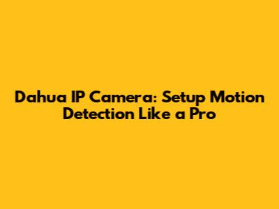 Dahua IP Camera: Setup Motion Detection Like A Pro