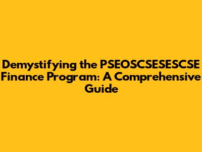 What Exactly is the PSEOSCSESESCSE Finance Program?**