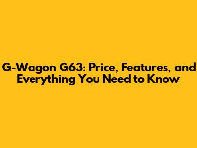 G-Wagon G63: Price, Features, And Everything You Need To Know