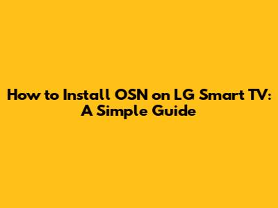 Step-by-Step Guide: Installing OSN on Your LG Smart TV