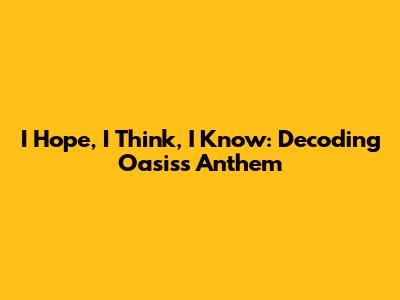 I Hope, I Think, I Know: Decoding Oasis's Anthem
