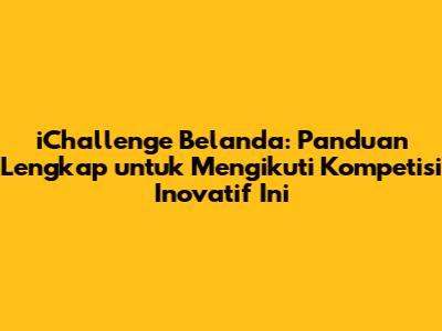 Pernahkah kalian mendengar tentang iChallenge Belanda? Ini bukan sekadar kompetisi biasa, guys. Ini adalah ajang inovasi yang seru dan menantang, di mana kalian bisa mengasah kreativitas, berkolaborasi dengan orang-orang hebat, dan mewujudkan ide-ide brilian menjadi solusi nyata. iChallenge Belanda membuka pintunya bagi para inovator muda dari seluruh dunia, termasuk Indonesia, untuk berkontribusi dalam memecahkan masalah-masalah global dengan cara yang out-of-the-box.