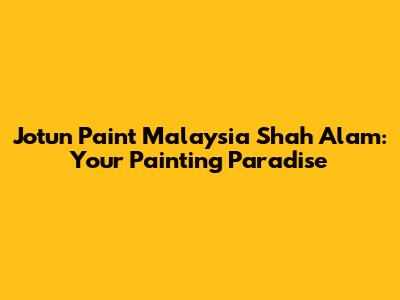 Jotun Paint In Shah Alam: Your Ultimate Guide