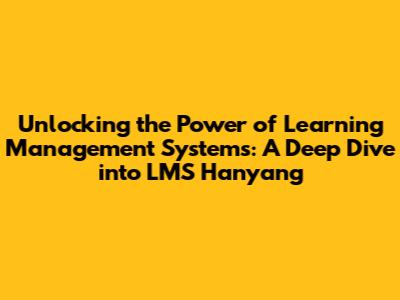 Unlocking the Power of Learning Management Systems: A Deep Dive into LMS Hanyang
