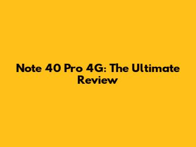 Note 40 Pro 4G: Review, Specs, And More