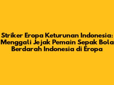Striker Eropa keturunan Indonesia menjadi topik menarik dalam dunia sepak bola. Banyak yang penasaran dengan pemain sepak bola berdarah Indonesia yang berkiprah di klub-klub Eropa. Artikel ini akan membahas tentang para pemain ini, mengungkap profil mereka, serta menyoroti kontribusi mereka dalam dunia sepak bola Eropa. Kita akan melihat siapa saja mereka, bagaimana perjalanan karir mereka, dan apa saja yang membuat mereka istimewa.